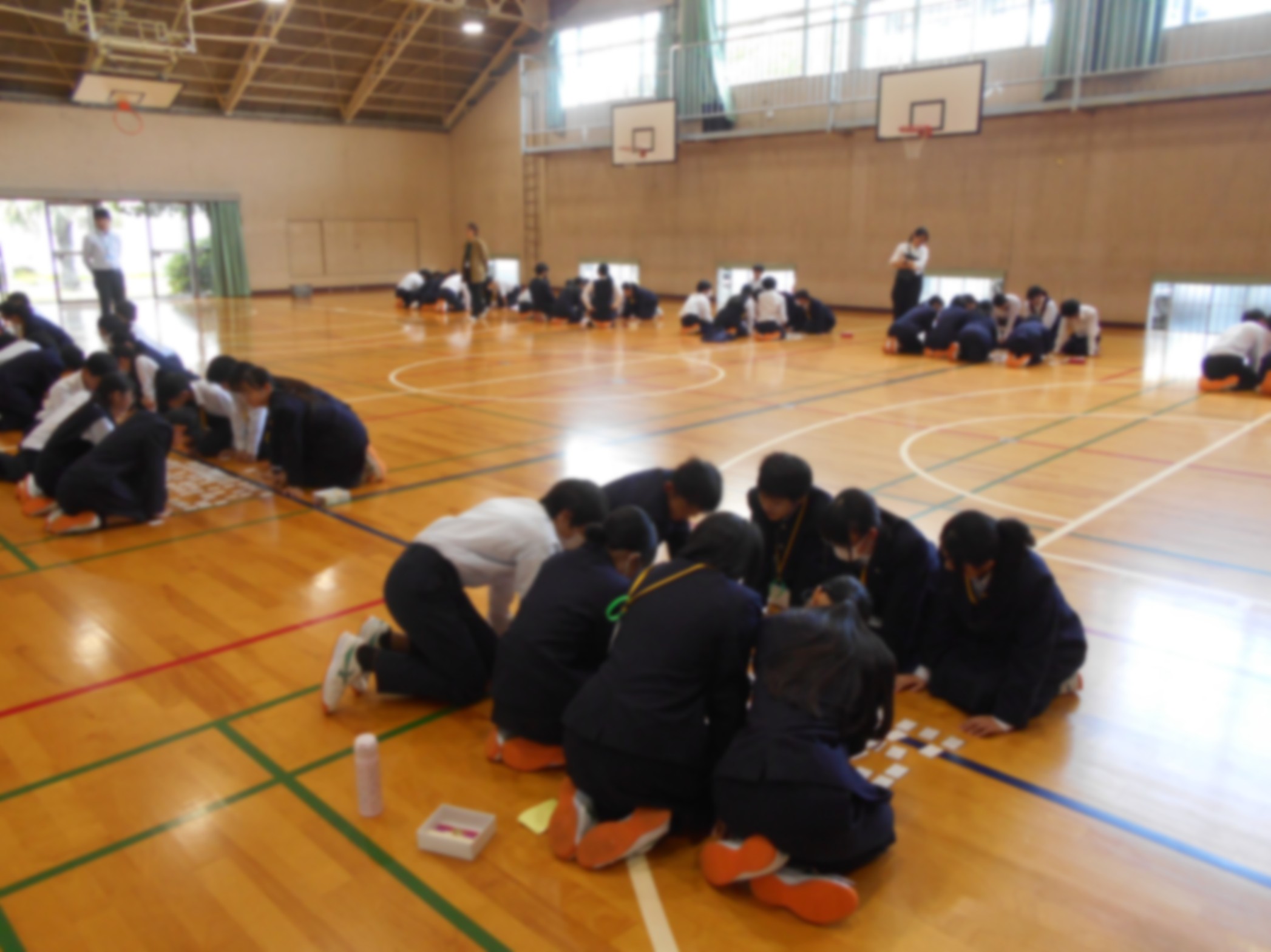 12月16日は東雲中学校恒例百人一首大会です。クラスター対抗で,全学年全生徒が一緒に百人一首に取り組みます。自分の好きな句の時には、上の句の最初を詠み挙げられた途端に札を取りにいきます。一年生は初めての参加ですが、友達や先輩方と協力して、楽しい行事に盛り上げていってほしいと思います。