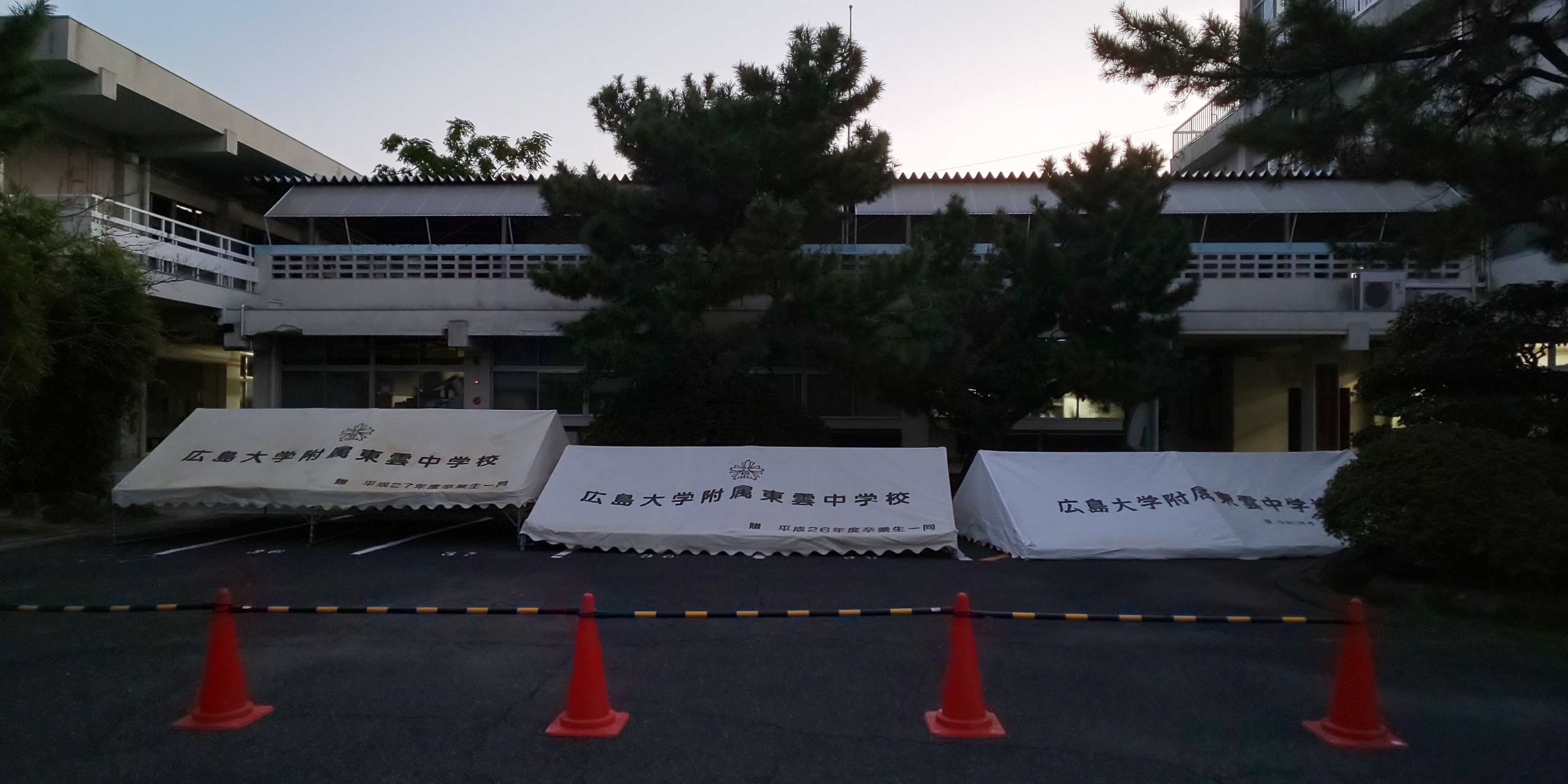 生徒と教職員が協力し,全世界(最北は岩手県,最南はインドネシア)からの参会者をお迎えするための会場設営・準備に力を尽くしました。テントや駐車場の設営,校内の美化清掃等,クラスター長や清掃リーダーを中心に取り組みました。明日の研究会本番では,学びの成果を発表するとともに,気持ちよくおもてなし,運営ができるよう頑張りたいと思います。至らぬ点もあるかと思いますが,明日はどうぞよろしくお願いします。