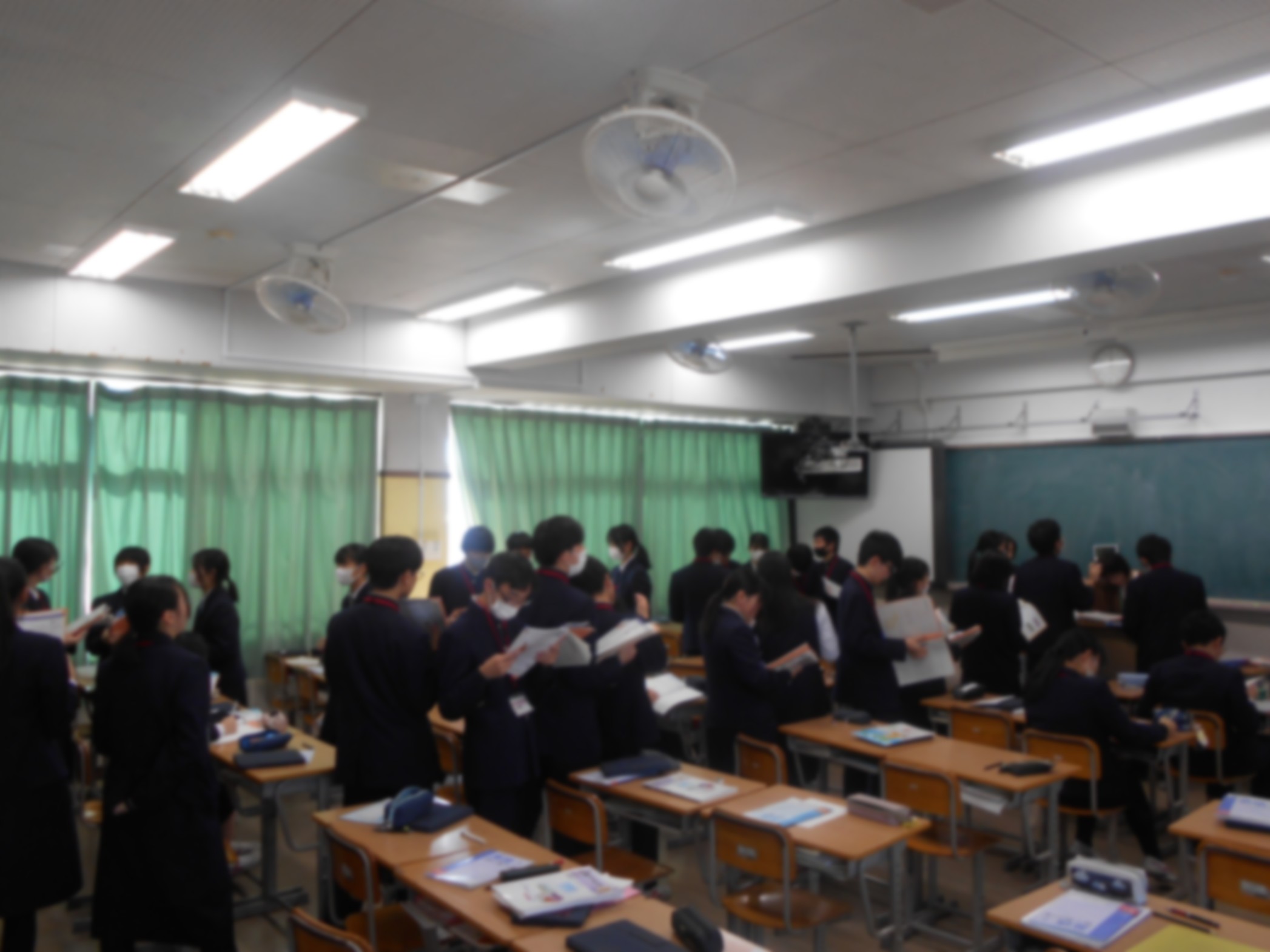 私が聞いたスピーチはどれも論の構成やエビデンスの示し方等よく練られており,また話者はオーディエンスの反応をよく意識していました。3年生ともなるとこんな立派なスピーチができるようになるのか…と思いました。授業は国語でしたが,全ての教科授業で「聞くこと・話すこと」を意識し,育ってきているのがよくわかりました。