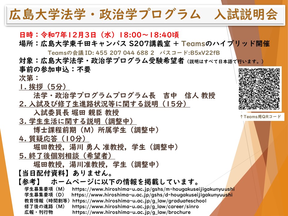 法学・政治学プログラムの入試説明会を12月3日(水)18:00~18:40に開催します。