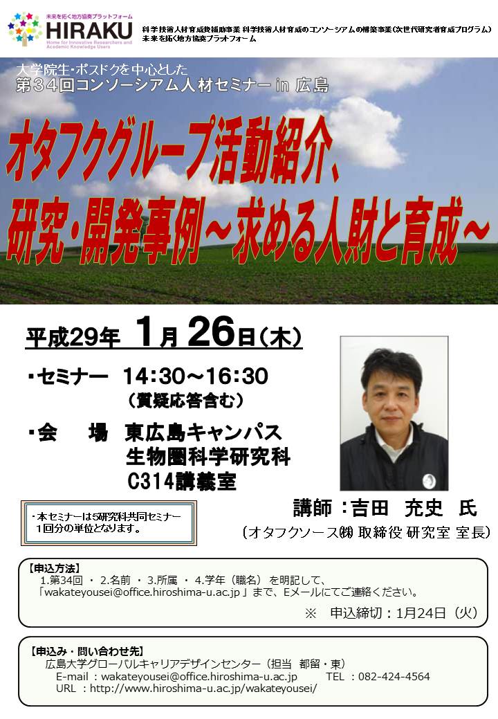 問合せ先:広島大学グローバルキャリアデザインセンター(担当 都留・東)