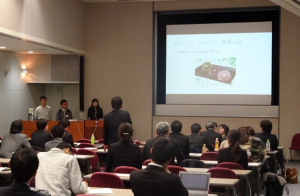 最後はテーマ3「佃煮の付加価値をサイエンスする」を担当した履修生が、提案企業株式会社ヒロツクの社員の方々と共に考え出した企画を発表しました。