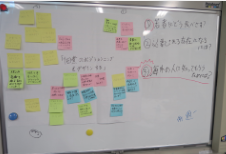 続いてその気づきを基に、さらに課題を掘り下げるためのテクニックを学び、実際に活用してみました。議論が平行線をたどり、なかなか前進するのが難しいグループもあれば、フィールドワークからの展開には苦労したものの今回は目標とするステップまで一気に展開したグループもありました。「進行のペースはバラバラでよいのです。モヤモヤして当然。ポイントは一気に解決策にジャンプしないこと。」という川瀬先生の言葉に、安堵する表情も見られました。