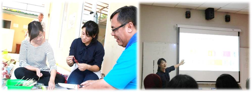 At the 1st grade’s class, I taught about Japanese phonetic alphabet. Since most of the 1st grade students don't have the Japanese language study background, so they had hard time on following me. To warm the classroom atmosphere and add more classroom interactions, I conducted many interesting activities. On the other hand, to make the students memorize hiragana and katakana, I prepared the teaching material which was closely related to our daily life.