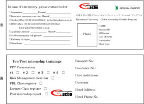 * 緊急時の連絡先がすぐにわかるよう、インターンシップ参加学生には専用カード(G.ecboカード)をお渡しします。 必要事項を記入し、渡航中は常に持ち歩いてください。