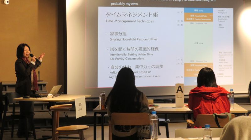 ミニトークでは、各地区3人の学内の女性研究者が「わたしのタイムマネジメント術・ツール活用術」をテーマに、キャリアを積む中で、あるいはライフイべントと研究の両立の中で、工夫していることや心がけていること、活用しているツールの紹介や後輩へのメッセージなど、一人10分程度、講演を行いました。