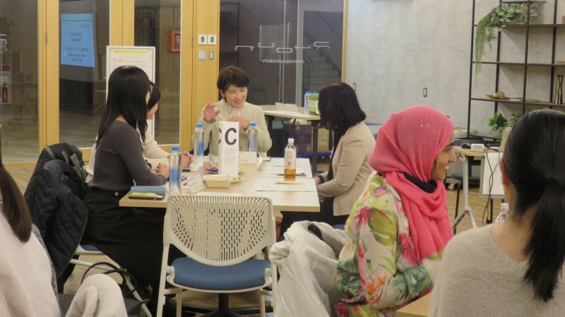 グループトークでは、ミニトークの講師や本学の男女共同参画推進委員会委員をまじえて、参加者の希望するテーマをもとにグループを作り、テーマに沿って懇談しました。途中でグループ間でメンバーを入れ替え、より多くの参加者と交流を行いました。