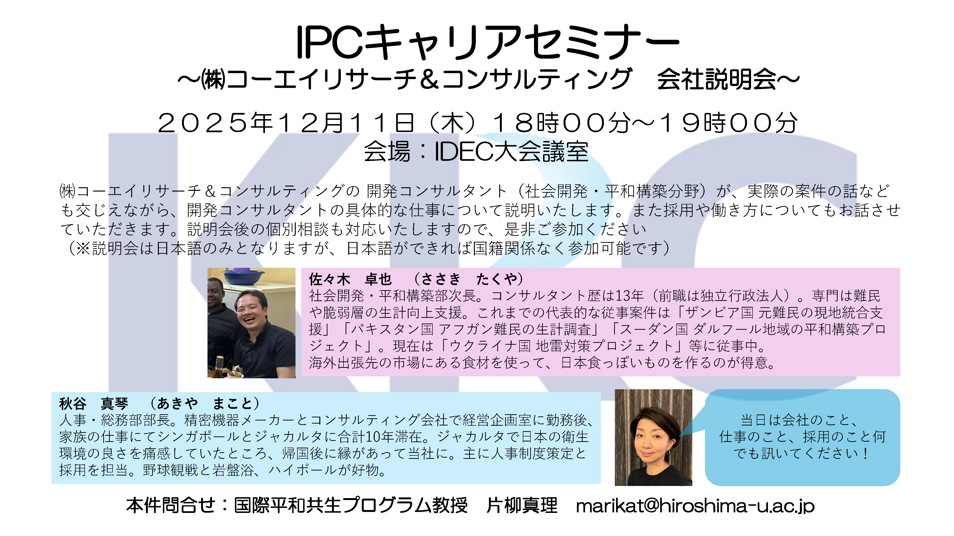 - 【2025/11/13(日本語)・11/21(英語)開催・要申込】国際平和共生プログラム進学説明会