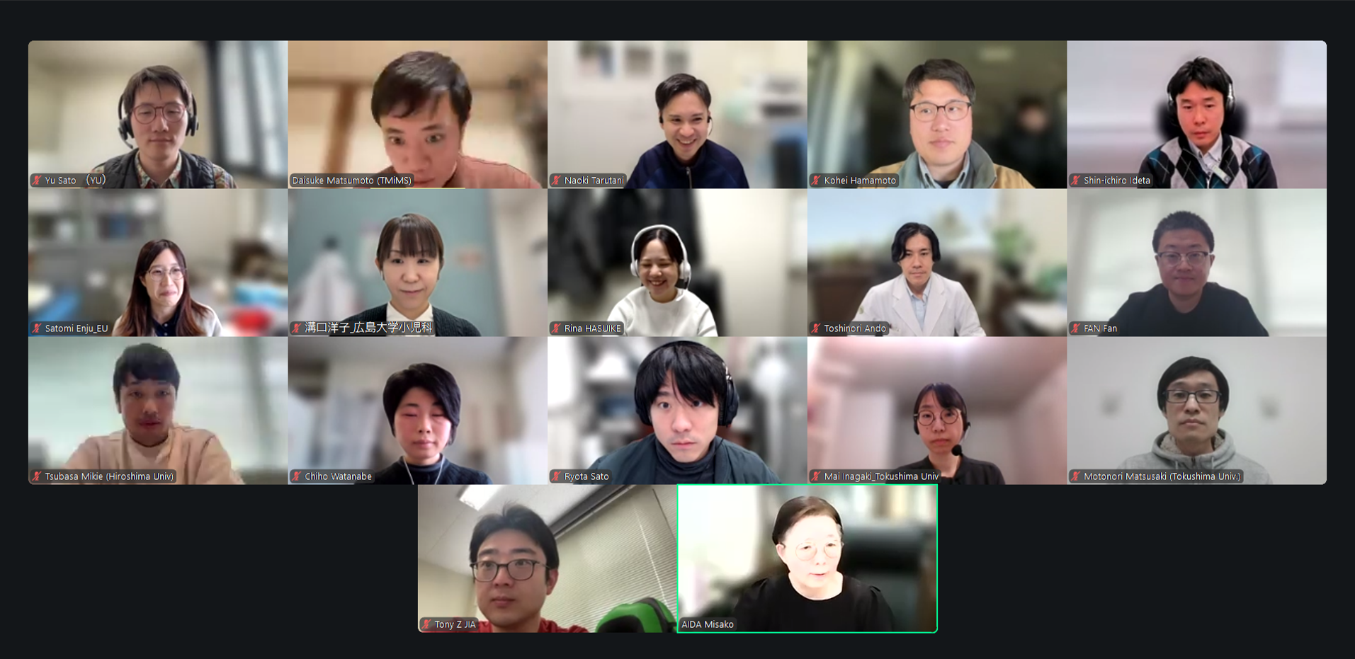 はじめに、本イベントの企画をリードし、当日の進行を担った松本 大亮博士(東京都医学総合研究所 再生医療プロジェクト)が、第2期HG教員の簡単な紹介と、進め方や目的について説明しました。その後、「共同研究と出張・渡航」をテーマに、出田 真一郎博士(広島大学 放射光科学研究所)、松﨑 元紀博士(徳島大学 先端酵素学研究所)、稲垣 舞博士(徳島大学 大学院医歯薬学研究部)、溝口 洋子博士(広島大学 大学院医系科学研究科)、樽谷 直紀博士(広島大学 大学院先進理工系科学研究科)がそれぞれ短いディスカッションをリードしました。具体的には、国内外の共同研究者との協働の重要性についての議論に加え、分野や背景、目標、コミュニケーションスタイルの異なる共同研究者との協働の際に、直面した課題や解決策について、経験談を交えた意見交換がありました。