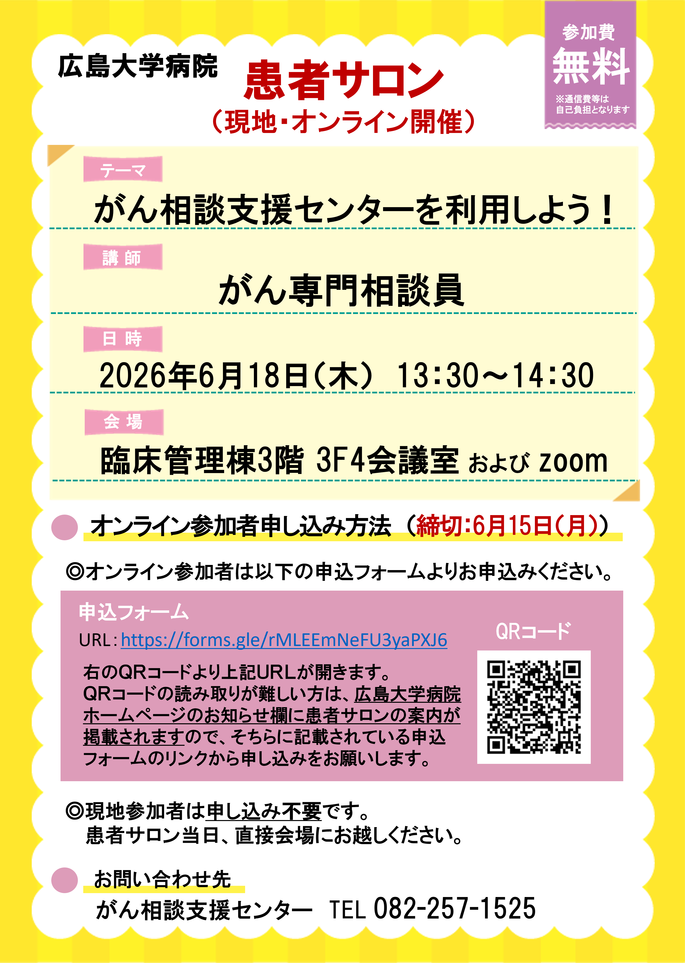 会場参加を希望の方は患者サロン当日、直接会場へお越しください。
