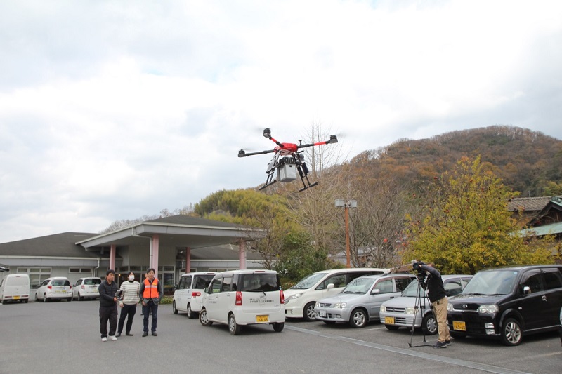 広島大学やNTTドコモなど7社は、小型無人機「ドローン」を利用して血液検体などを搬送する実証実験を、平成30年12月18日、豊田郡の大崎上島町で行いました。昨年に続き2度目の実験です。