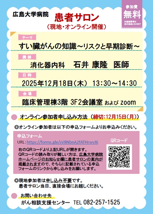 開催方法:広島大学病院 臨床管理棟3階 3F2会議室 および Zoom