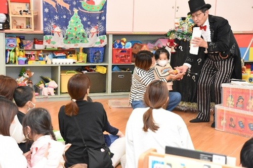 がんの子どもを守る会広島支部が招かれた、「マジックおじさん」こと反田哲顕(たんだ・てつあき)さんのマジックショーとクリスマス会が16日にありました。