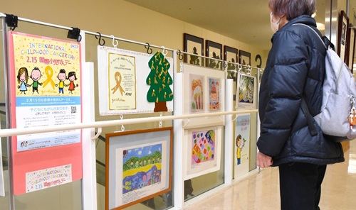 国際小児がんデー(2月15日)を機に正しい知識と理解を広めるため、小児がんの子どもたちが描いた絵画展が3月6日まで、広島大学病院診療棟3階エスカレーター前で開かれています。