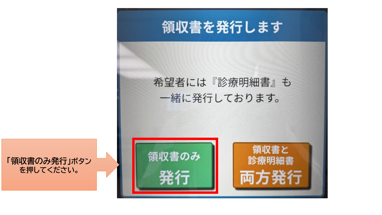 自動精算機画面の、「領収書のみ発行」ボタンを押してください。