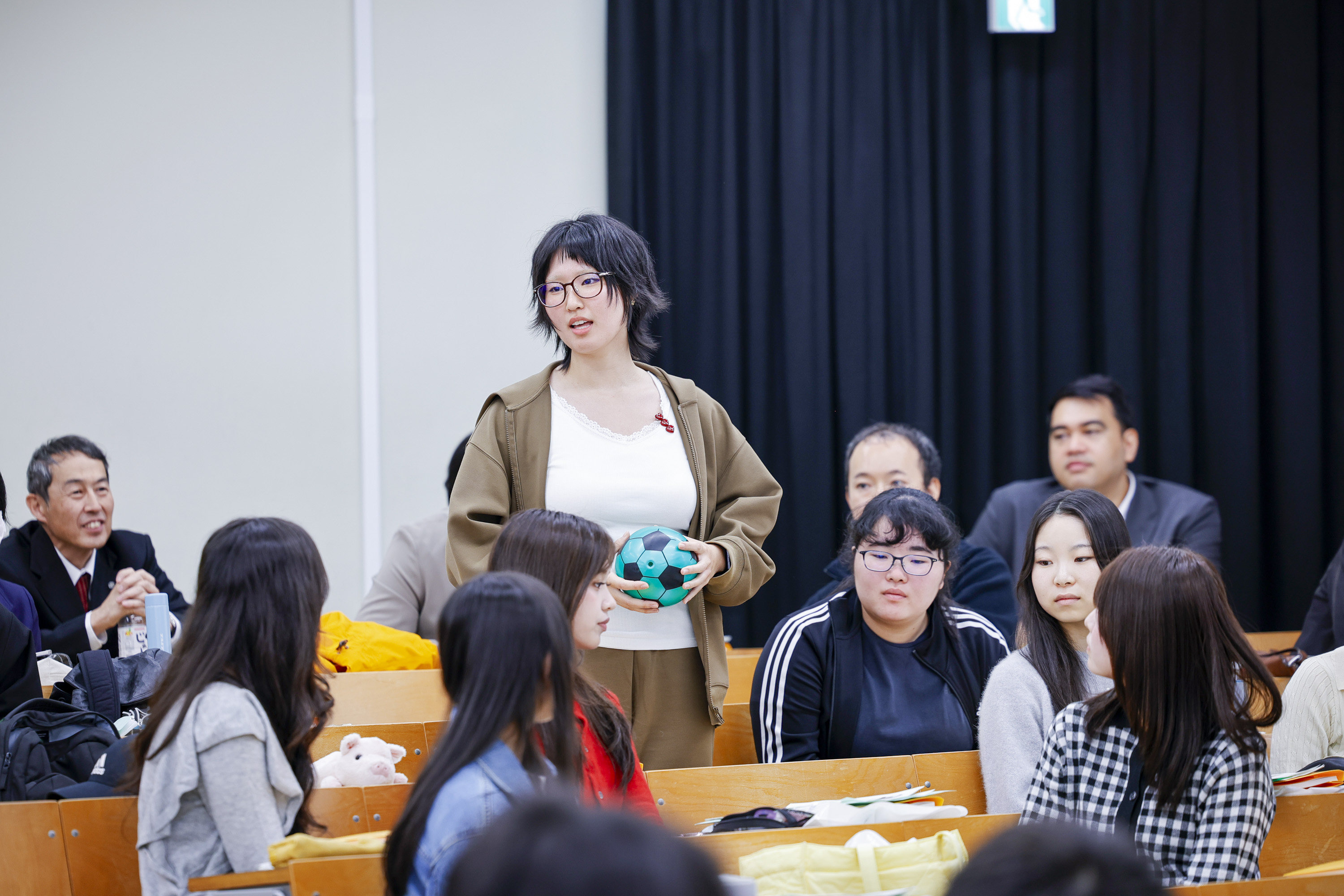 ガイダンスで自己紹介する新入生