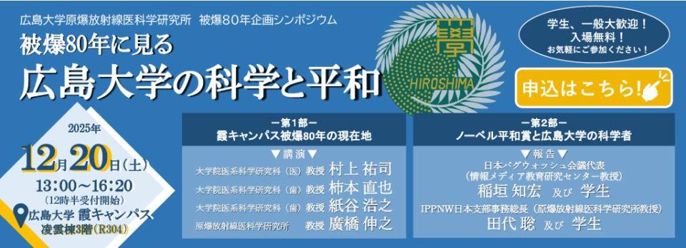 【2025/12/20開催・霞・要申込】広島大学原爆放射線医科学研究所 被爆80年企画シンポジウムを開催します