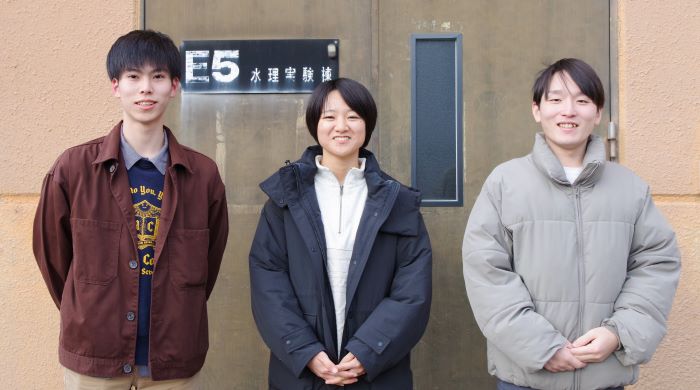 高校では物理を選択しており、3年生で将来の進路を考えたときに理学部と工学部を比較して、より社会の身近なところで役に立ちそうな工学部に進学することにしました。物理を選択していましたが、自然系も好きだったので、工学部で自然系のことが学べそうな社会基盤の分野を選びました。さらに私は、光や波、温度など、自分で見たり感じたりすることのできる自然現象に対しても興味を持っていたため、コンクリートや地盤、交通系など様々な研究対象がある中でも、自然現象を数式で表す水工学に魅力を感じて今の研究室に入ることにしました。