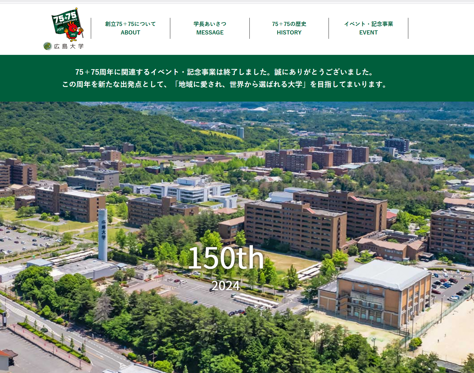 Hiroshima University 75+75th Anniversary Website (Japanese Page)