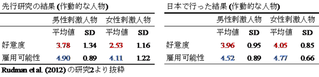 バックラッシュ効果の研究は主に海外で実証されているのですが、私はこれが日本でも再現されるかどうかを検証しました。その結果、海外と同様のシナリオを用いた調査では、日本における管理職を目指す女性に対するバックラッシュ効果は見られないということがわかってきました。