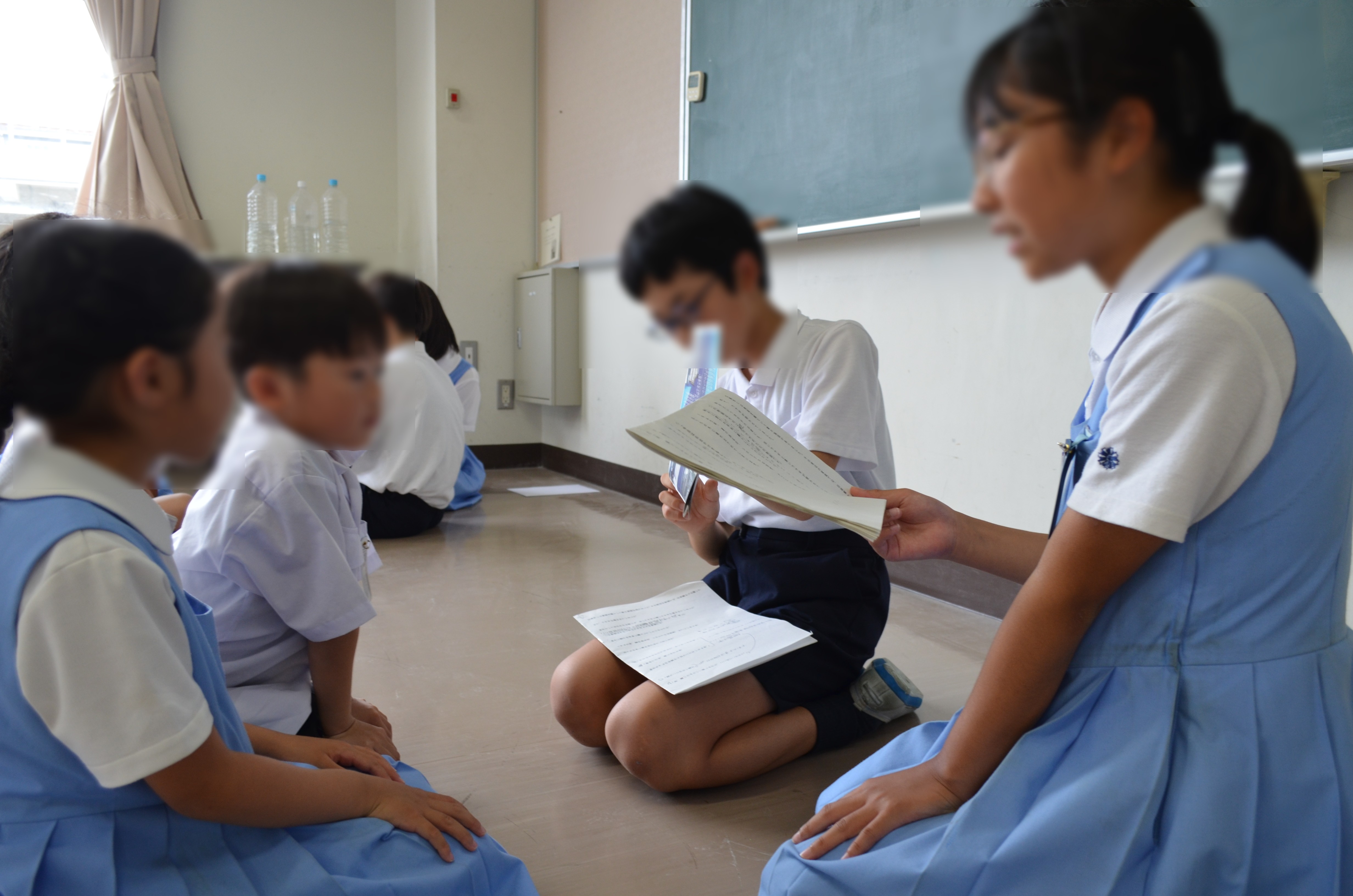 戦争や原爆について初めて知ることも多い1年生。学習を通して、「ともだちとなかよくする」「きょうりょくする」など、まずは自分たちが思う身近な平和から考えました。このような活動を通して、「平和に暮らすために、私たちは何ができるのか」を考え、平和を願う心の素地を養い、次学年へつないでいきます。