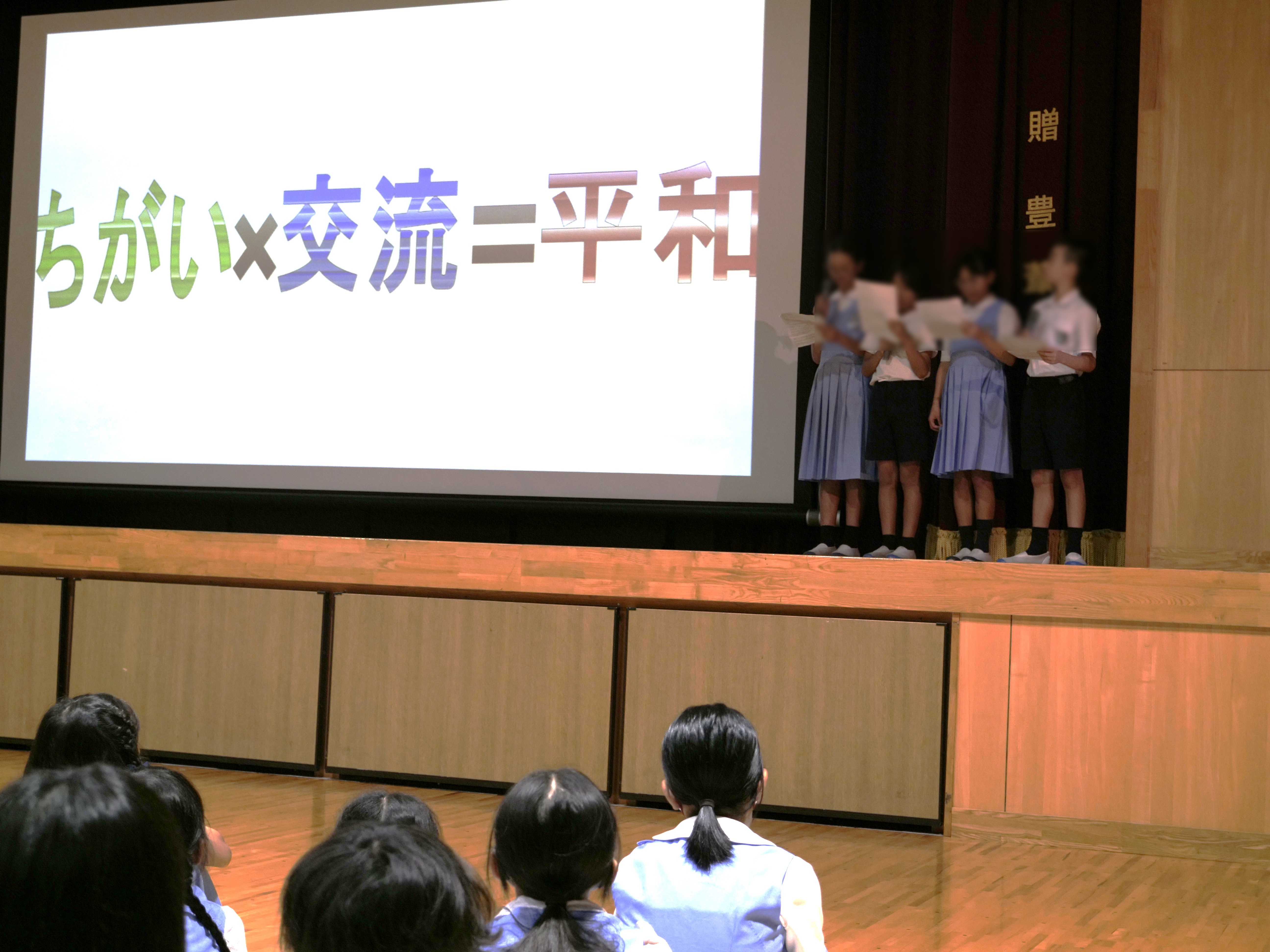 「交流」が後期の平和学習でもキーワードとなって展開していきます。他者と協働することのよさが平和な世界・社会の創造にどうつながっていくのか,後期もしっかり考え,語り合い,学び合っていきます。