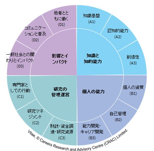 This resource has been translated by Hiroshima University with permission. It is based on the original resource, the Vitae Researcher Development Framework, Vitae, 2025© Careers Research and Advisory Centre (CRAC) Limited and is subject to the conditions of use at https://tinyurl.com/2u6t9hdd