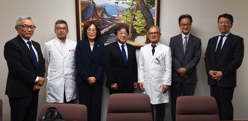 福島県と福島県立医科大学の6人が11月12日、広島大学病院を訪れ、福島県の「ふたば医療センター」への医師派遣に感謝を述べ、福島の復興へ引き続き支援を求めました。
