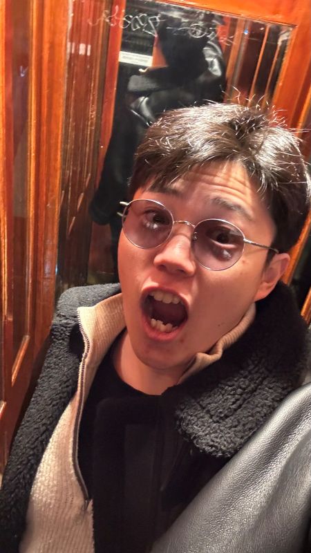 写真③ 歴史あるエレベーターに閉じ込められた時の写真です。クリスマスイブのため、少し焦りました。