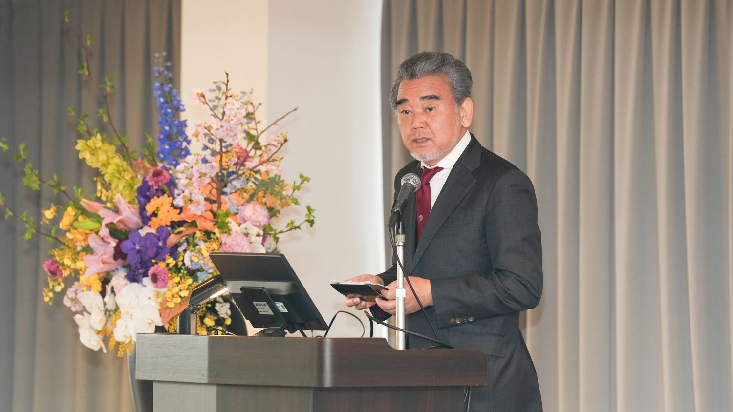 開会挨拶では、越智学長より、本学がこれまで推進してきた国際連携教育の成果を踏まえ、AI時代における人材育成には企業と連携した実践的インターンシップの充実が不可欠であるとの認識が示されました。あわせて、大学院教育改革および産学連携の強化を通じ、国際的に活躍できる高度人材の育成を一層推進していく方針が述べられました。また、本シンポジウムが大学と企業の協働を一層深化させ、地域産業の発展につながる契機となることへの期待が表明されました。