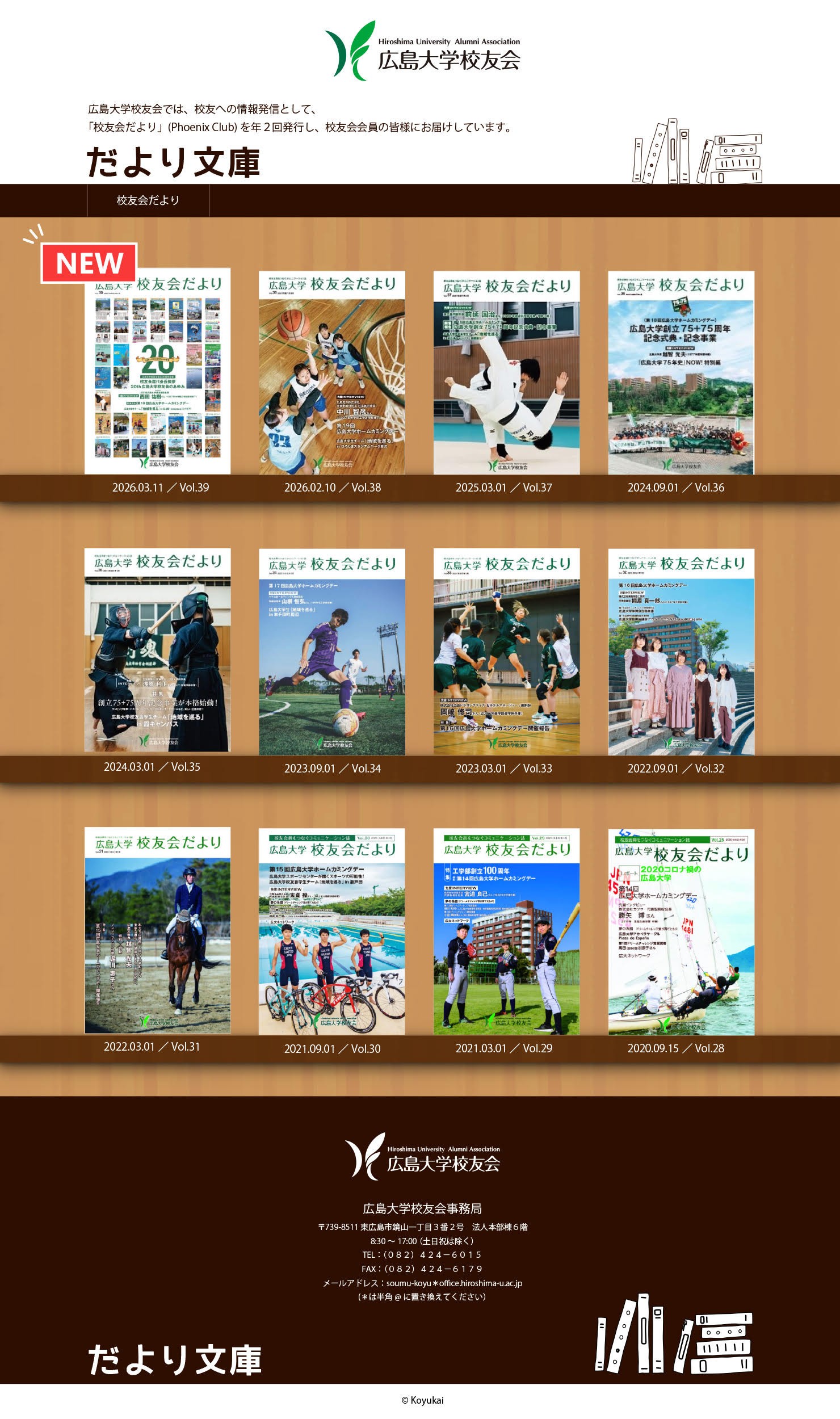広島大学校友会では、校友への情報発信として、「校友会だより」(Phoenix Club)を年2回発行し、校友会会員の皆様にお届けしています。