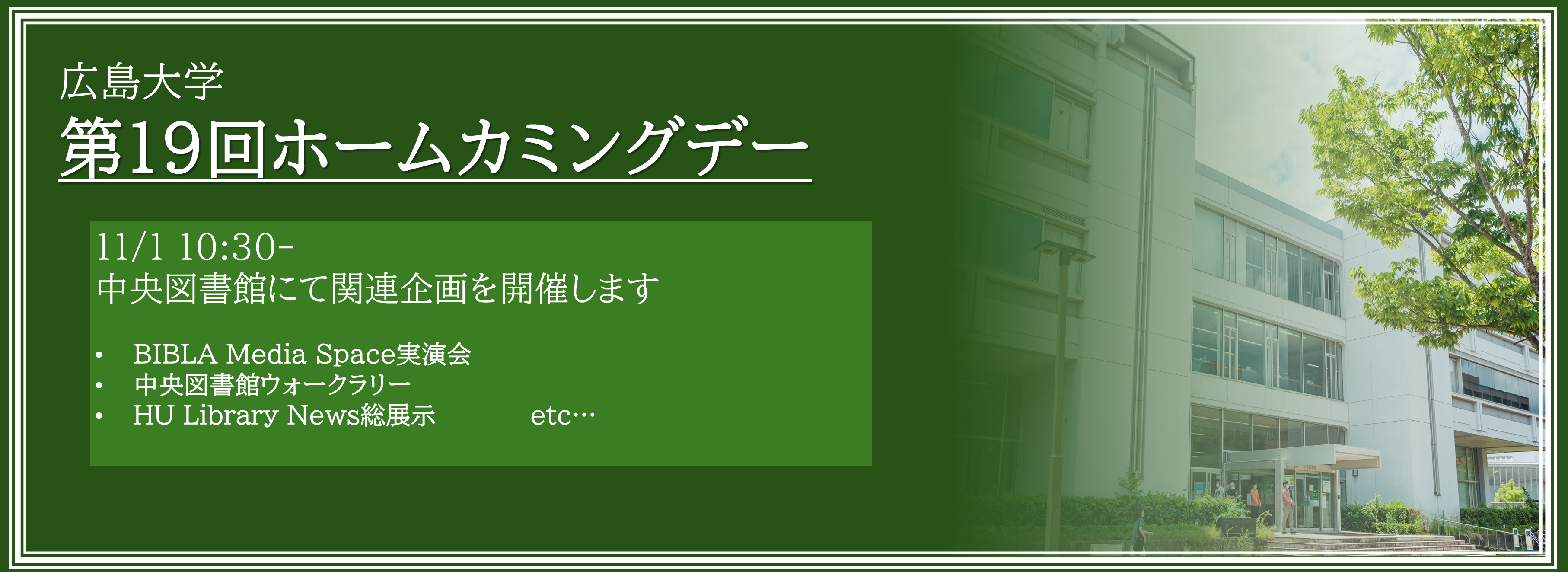 11/1(土)に開催されてます第19回ホームカミングデーに際して、西図書館・中央図書館にて以下企画を行います。この機にぜひご参加くださいませ。
