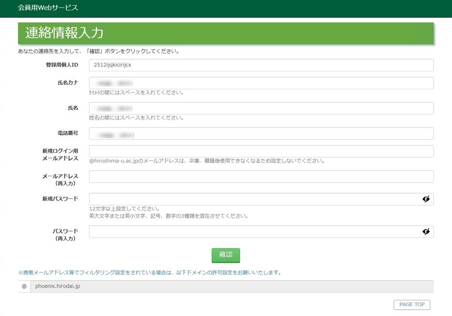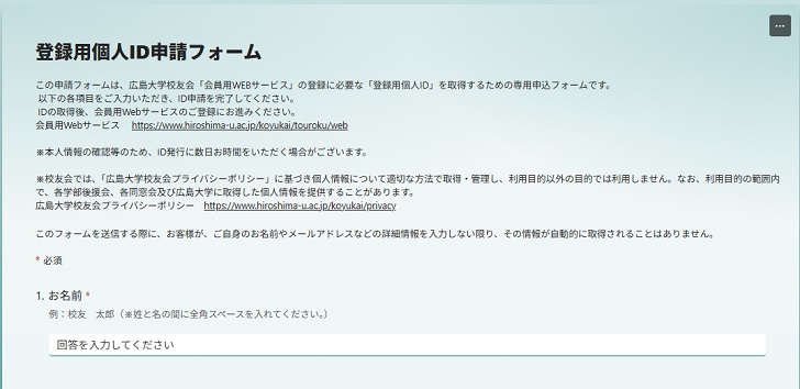 「登録用個人ID」は、校友会会員番号とは別のID番号となります。