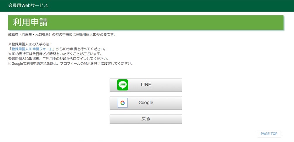 - LINE・Googleで利用申請を進める方