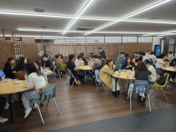 法学部では,令和7(2025)年10月24日に東千田キャンパスプナナダイニングにて,「Welcome Party」を開催しました。 この秋に広島大学に入学した留学生の皆さんを歓迎するもので,留学生及び日本人学生合わせて54名が参加しました。