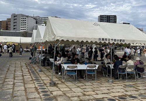慎思棟1階生協内に設置したステージでは、午前10時に千田祭実行委員会による開会式のあと、東千田キャンパスのバンドやダンスサークルをはじめ、東広島キャンパスのサークルなど、終日成果を発表しました。特に、STARMIXXと千田小学校ダンス部のコラボレーションダンスでは、父兄の方をはじめ多数の地域の方が観覧くださり、大盛況でした。