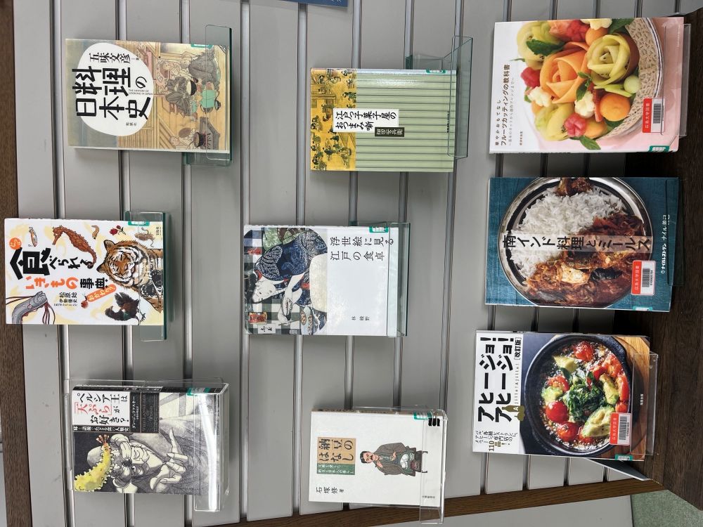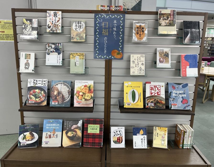 11月の中央図書館企画展示のテーマは「本で味わう口福のひととき」です。食べ物の歴史やレシピ本など、読むだけでお腹がすいてくる本を集めました。