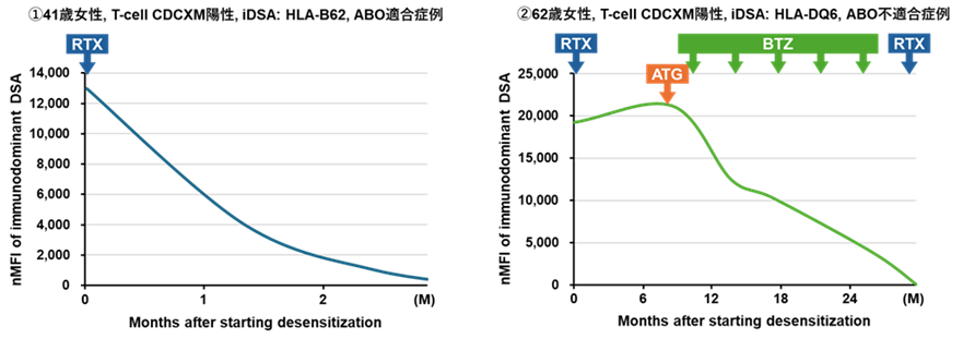 具体的には、リツキシマブでB細胞を抑制した後、必要に応じてボルテゾミブ(形質細胞阻害薬)や抗胸腺細胞グロブリンを追加し、DSAが消失するまで治療を継続しました。