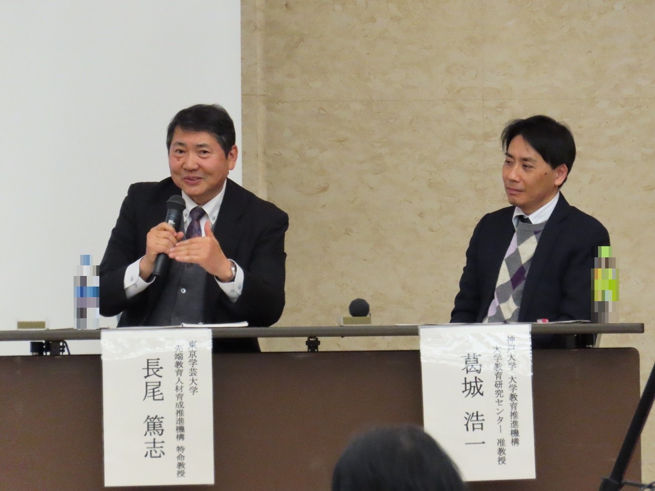 次に3名の先生方への問いとして、「現代の大学教育の実情をみたとき、大学の質保証を改めて定義し直す必要があるか?」「探究とは何か? それを評価する際、高校・大学・社会で規準に違いはありそうか?」「高校生・大学生の学びはどのようにありたいか、そのために大学は何をするべきか?」等を提示し、参加者も交えながら質疑応答を行いました。参加者からも多くの質問が寄せられ、高校での探究の実践や大学の質保証等について活発な意見交換が行われました。最後に熊本卓哉副機構長から閉会挨拶があり、シンポジウムを締めくくりました。