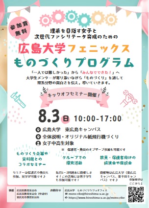 広島大学東広島キャンパス内でキックオフセミナーを開催しました。ガイダンスの後、鈴木准教授によるオリジナル紙飛行機の作り方や飛行機が飛ぶ仕組みについての講義を行いました。紙飛行機の制作では、吉田式の切り折り紙飛行機を実際に作り、大広間や廊下で飛ばしてもらいました。昼休憩の後は、グループごとにオリジナルの紙飛行機を試行錯誤をしながら作ってもらい、全員の前で紙飛行機の飛行発表を行いました。探求活動ガイダンスでは、10人のメンターが、探求活動の方法を説明しました。7時間と長丁場でしたが、受講生は真剣に課題に取り組んでいました。
