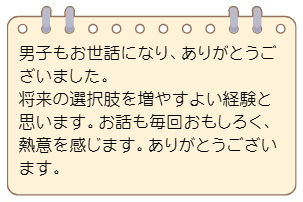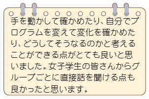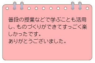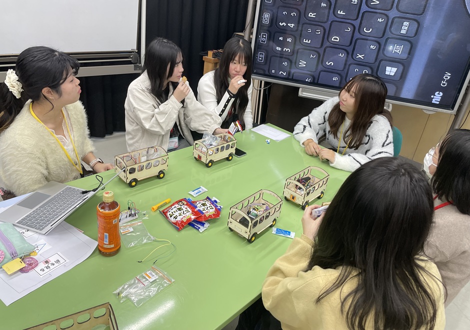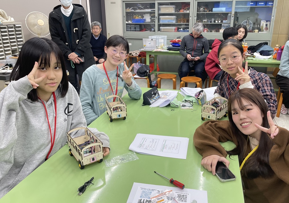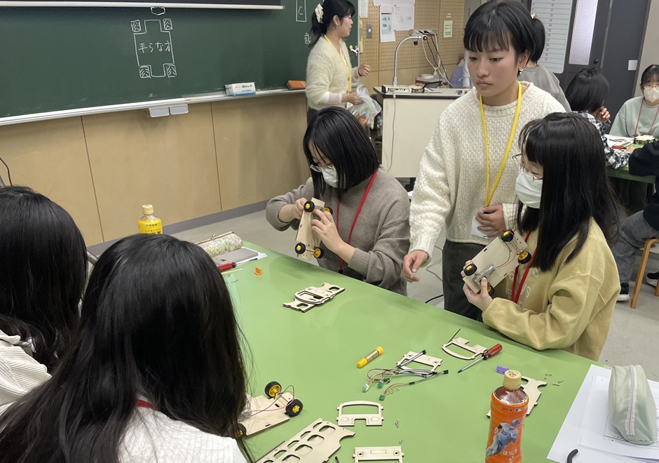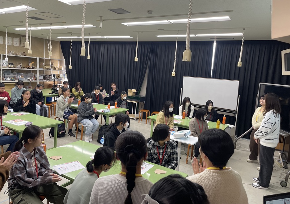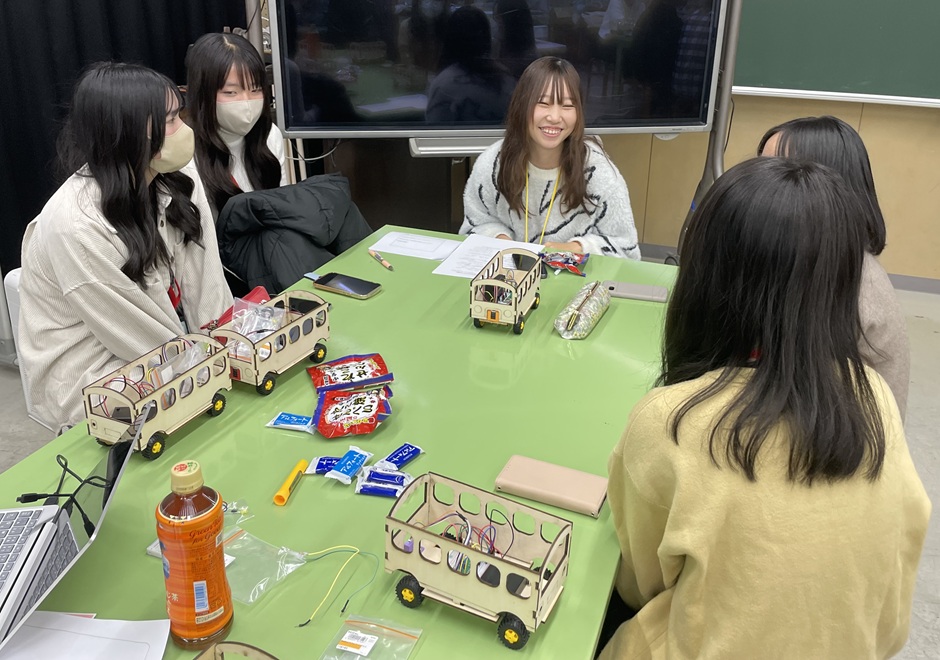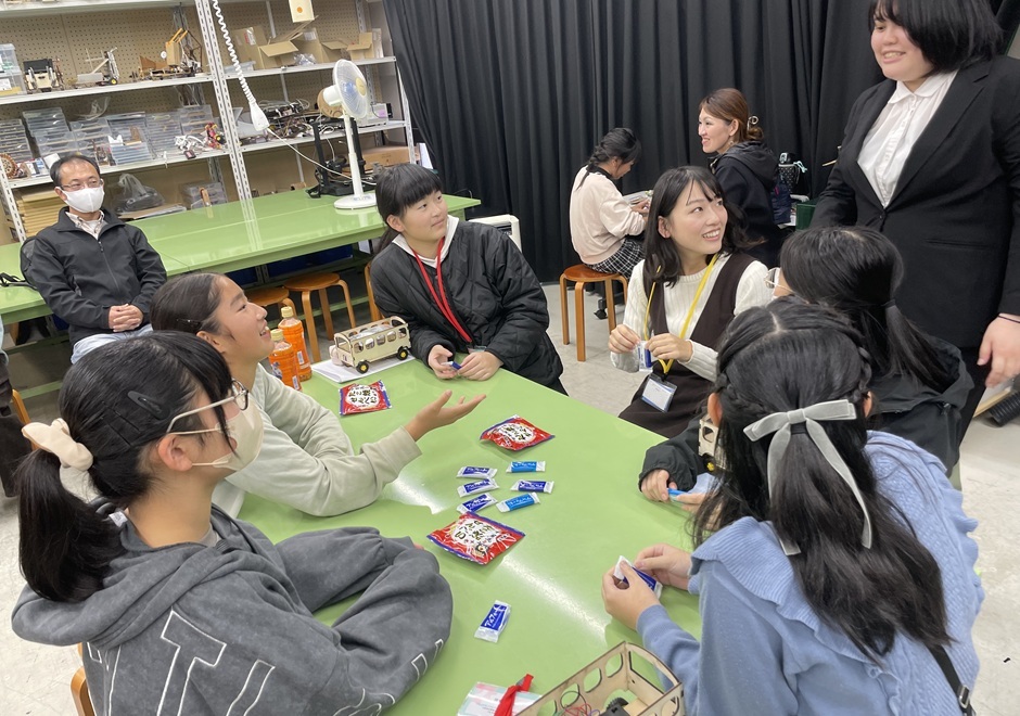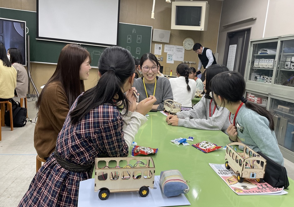 ものづくりが終わった後は、各テーブルごとにサポートを行った女子大学生や大学院生との交流の時間を設けました。会場では和やかな雰囲気の中で会話が弾み、学びと交流の両面で充実したセミナーとなりました。