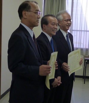 平成24年5月14日(月)、福島県立医科大学において、広島大学、長崎大学、福島県立医科大学の学長会議を開催しました。本学からは、浅原学長、岡本理事・副学長(社会産学連携・情報・広報担当)、土屋理事・副学長(研究担当)が出席しました。会議の前に東日本大震災以降の復興へ向けての医療活動への協力に対し、菊池福島県立医科大学長より感謝状の授与がありました。