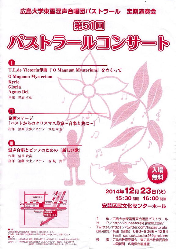 • 広島大学東雲混声合唱団パストラールが、第51回コンサートを開催します