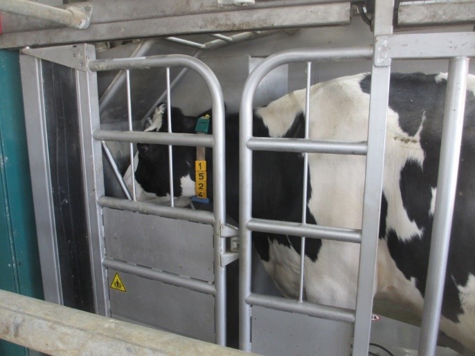 フリーストール式牛舎と呼ばれる、牛が自由にすごすことができる牛舎に設置され、牛は自由に訪問し、自動で搾乳を行う搾乳施設です。搾乳ロボットは訪問を促すための配合飼料を自動で給与し、飼料摂取中に搾乳を行います。1台の搾乳ロボットで50から60頭の搾乳が可能です。1回の搾乳時間は5分前後であり、スニファー法ではこの間の呼気を採取しメタン排出量を推定します。