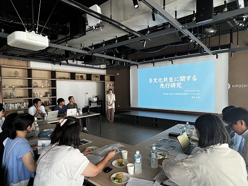 広島大学学生側から多文化共生や、文化の違いにより心理的に起こりうる状況などについての説明を行い、良和ハウス側からは、広島県の外国籍住民に関して、近年の傾向や、外国人との共生が進みつつある地区の紹介などを行いました。