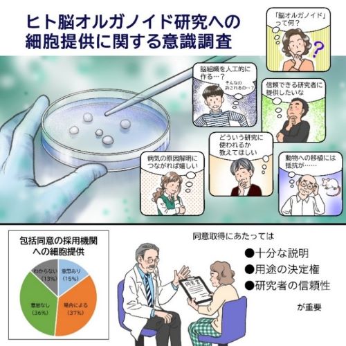 ・ヒト脳オルガノイド研究への細胞提供意思を示した参加者は76%。