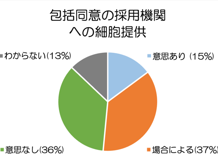 ・包括同意を採用する研究機関への細胞提供意思を示した参加者は52%。