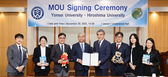 2025年11月20日、広島大学の越智光夫学長および金子慎治理事・副学長(グローバル化担当)、金ミンジュ副理事(キャンパス国際化担当)が、韓国の延世大学を訪問し、大学間国際交流協定の締結式を執り行いました。