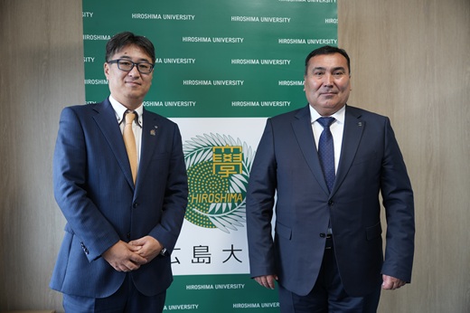 2025年12月2日、ウズベキスタン・タシケント国立医科大学チルチク校のスルタノフ・ガフルッドジョン校長ご一行が本学の東広島キャンパスを表敬訪問、本学の金子 慎治理事・副学長(グローバル化担当)と会談しました。会談では、両大学の紹介が行われたほか、学生・教員交流、共同研究、共催のワークショップをはじめとした両大学の今後の交流の可能性などについて意見交換が行われました。