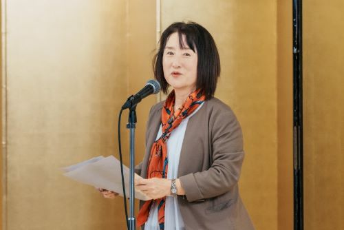 冒頭、司会の桜井弘規氏 (法学部卒 株式会社eRCC) が、被爆80周年で広島大学が開催した事業や、会員のメディア各社が周年事業に関わったことを紹介。安東善博氏 (教育学部卒 本会前会長 株式会社中国放送相談役) が乾杯の発声。宮迫会長は、「メディアの力で広島大学を盛り立てていこう。」と挨拶で述べ、越智学長は広島大学の最新情報ついて説明し「引き続き、皆さんに支援して頂きたい。」と挨拶しました。